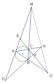 三切線與三頂點對邊的延長線分別交於M,N,O