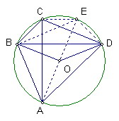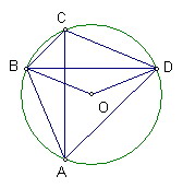 難度:☆☆☆ 題目: 四邊形ABCD為圓內接四邊形且AC⊥BD 試證明四邊形ABOD面積和四邊形BCDO面積相等 看解答請點此